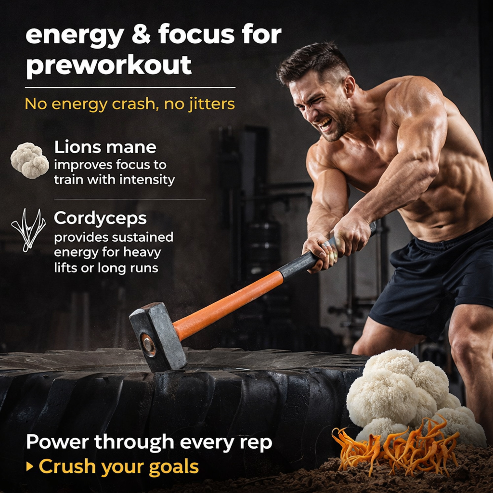 - FUNCTIONAL MUSHROOMS FOR ENERGY & FOCUS Enriched with Cordyceps Militaris, Lion’s Mane & Reishi to support endurance, mental clarity, recovery, and overall wellness as part of an active lifestyle.